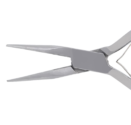 Alicate, fabricado en acero inoxidable, que se utiliza para el ajuste de monturas metálicas.